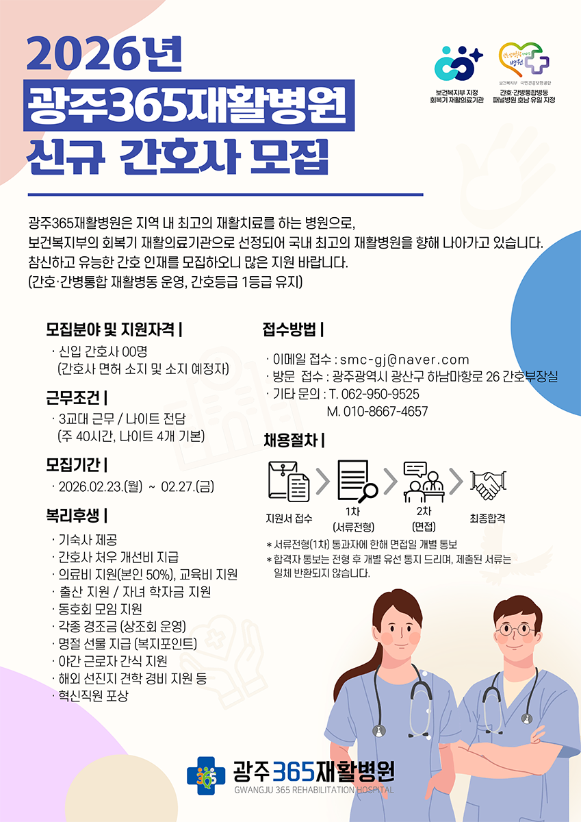 ±¤ÁÖ365ÀçȰº´¿ø¿¡¼´Â ÀçȰÀÇ·á ¹®È¸¦ ÇÔ²² ¼±µµÇØ ³ª°¥ Âü½ÅÇϰí À¯´ÉÇÑ °£È£»ç¸¦ ¸ðÁýÇϰí ÀÖ»ç¿À´Ï, ¸¹Àº Áö¿ø ¹Ù¶ø´Ï´Ù.